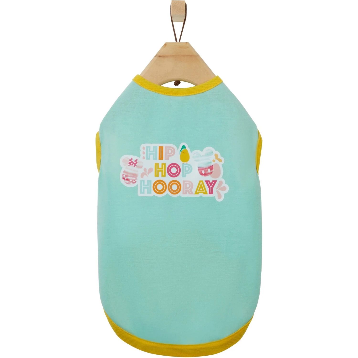 - Disney pet t-shirt features Mickey and Minnie painted eggs and reads “Hip Hop Hooray.”