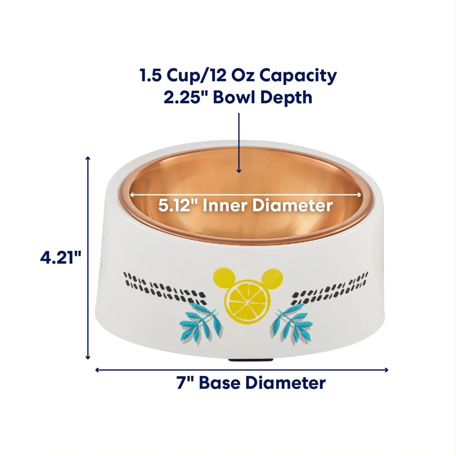 Disney Mickey Mouse Lemons Slanted Elevated Stainless Steel Dog & Cat Bowl, 1.5 Cup