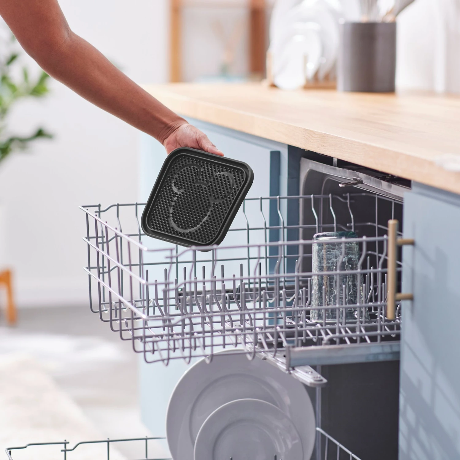 - Disney design lick mat featuring Mickey’s silhouette and available in red or black.