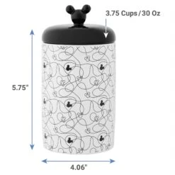 - This Disney Minnie Mouse melamine base comes in black, is covered in white polka dots and has Minnie’s face on the front for extra cuteness. Matching treat jar also available.