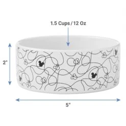 Disney Mickey Mouse Black & White No-Skid Ceramic Dog & Cat Bowl